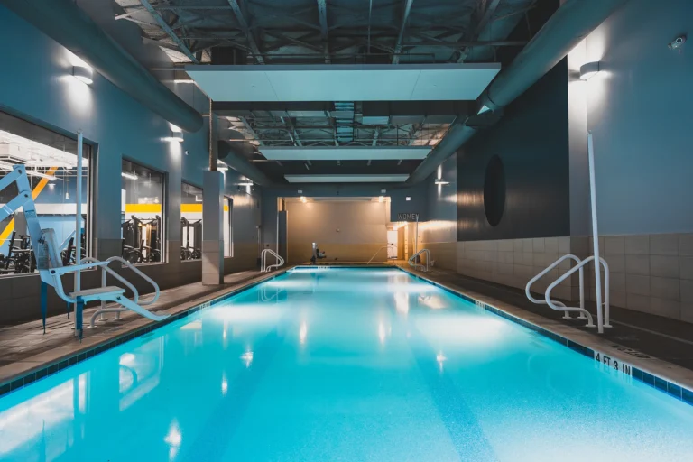 Una piscina cubierta de tamaño completo disponible para natación, clases de agua y sesiones de natación abierta.